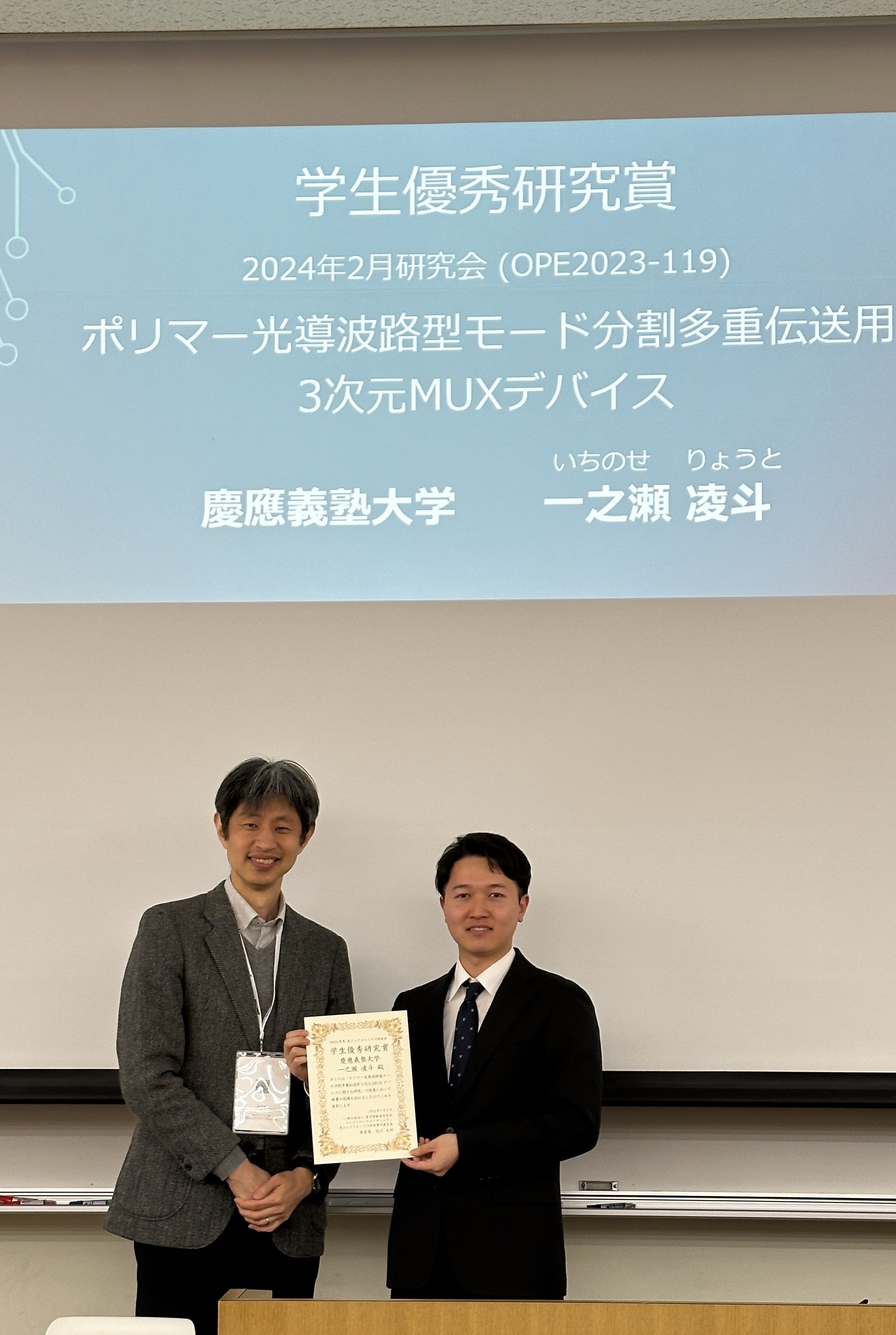 研究内容Research 研究室メンバーPeople 発表論文Publications 2年生・3年生へfor Students アクセス・お問い合わせAccess / Contact 関連リンクLinks 研究内容Research 研究室メンバーPeople 発表論文Publications 2年生・3年生へfor Students アクセス・お問い合わせAccess / Contact 関連リンクLinks Contact English 閉じる 2023年度電子情報通信学会 光エレクトロニクス研究会学生優秀研究賞 一之瀬凌斗君が受賞! Photo Gallery 年度別 お知らせ一覧 2025年度 2024年度 2023年度 2022年度 2021年度 2020年度 2019年度 2018年度 2017年度 2016年度 2015年度 2014年度 2013年度 2012年度 2011年度 2010年度 2009年度 2008年度 2007年度